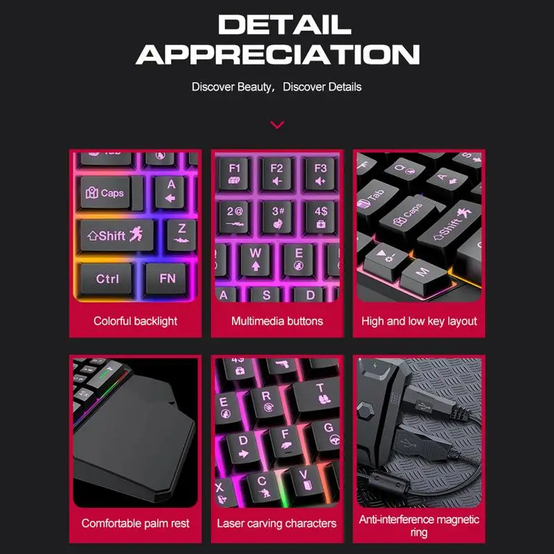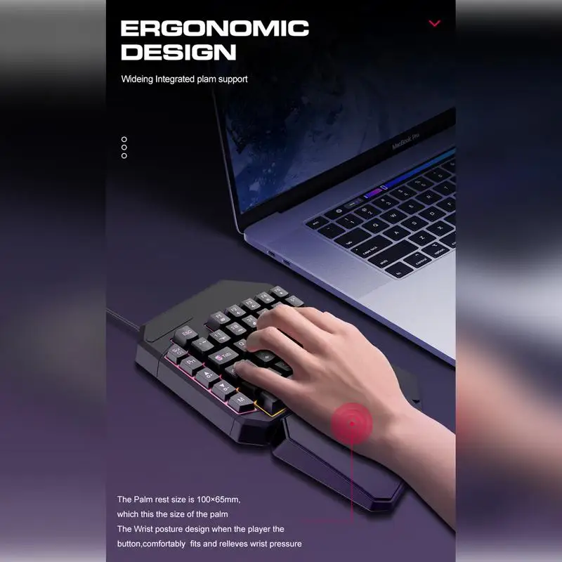 1.Convenient to Use: Due to its adoption of a USB wired connection, this one-handed game keyboard allows for effortless plug-and-play functionality: without any complicated pairings or driver installations
