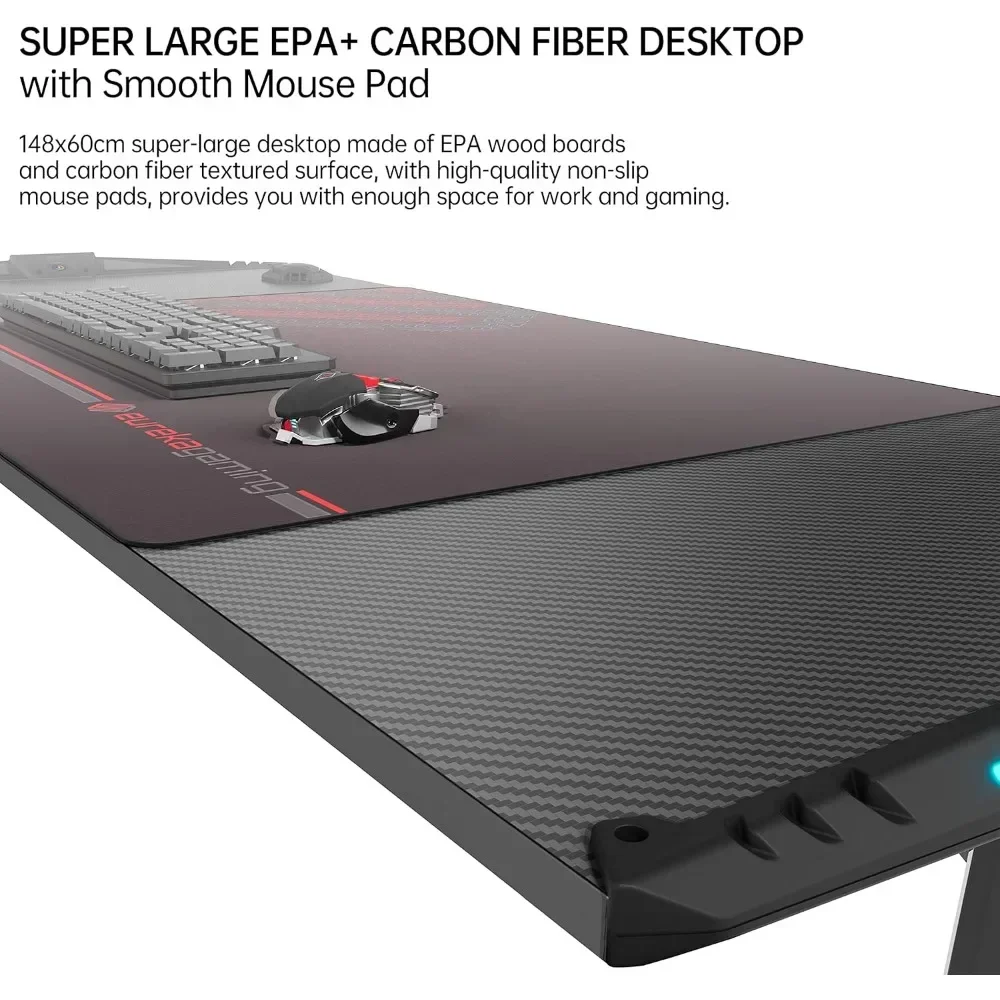 55 Inch RGB LED Gaming Desk with Lights Up, PC Computer Studio Gamer Table I Shaped Home Office Workstation, w Free Mouse Pad