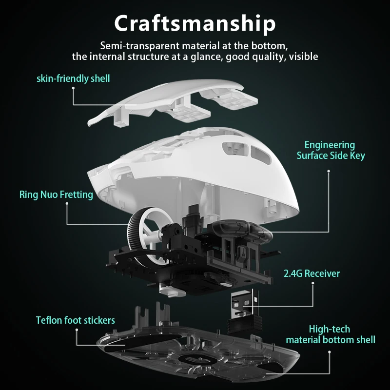 - Sensor model: Pixart 3395 (26000 DPI|650 IPS|50G)