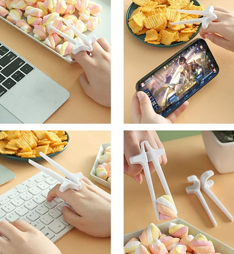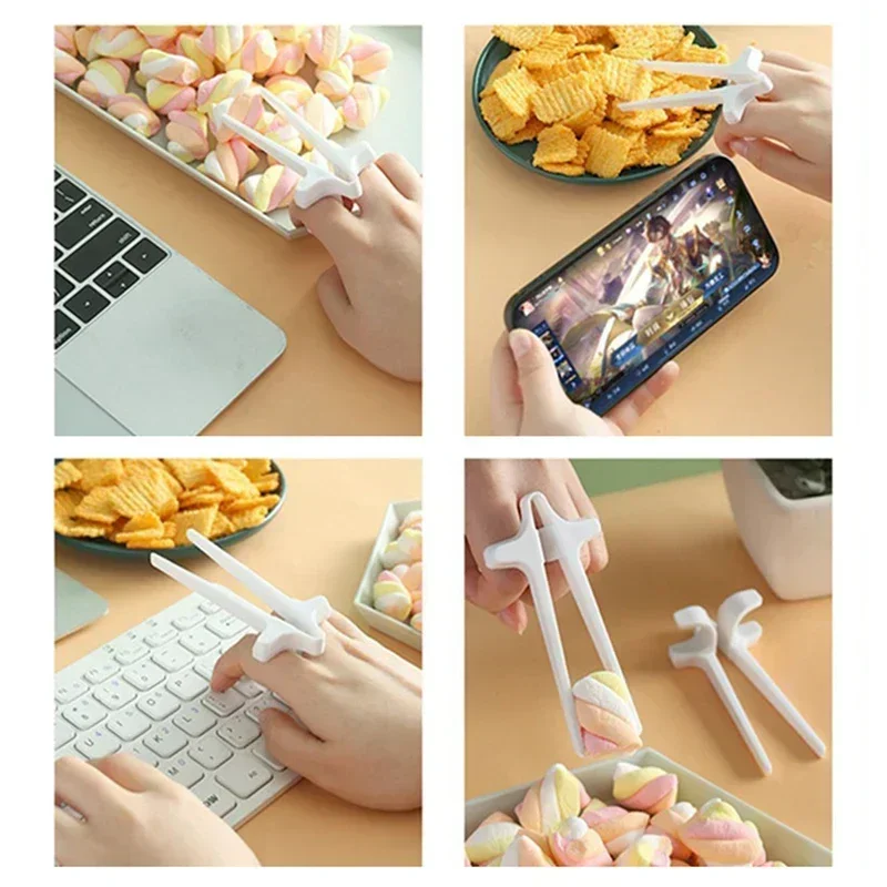 Finger Chopsticks for Gamer Gaming Snack Clips Plastic Chopstick Snack Food Finger Tongs Lazy Artifact Assistant Finger Tool