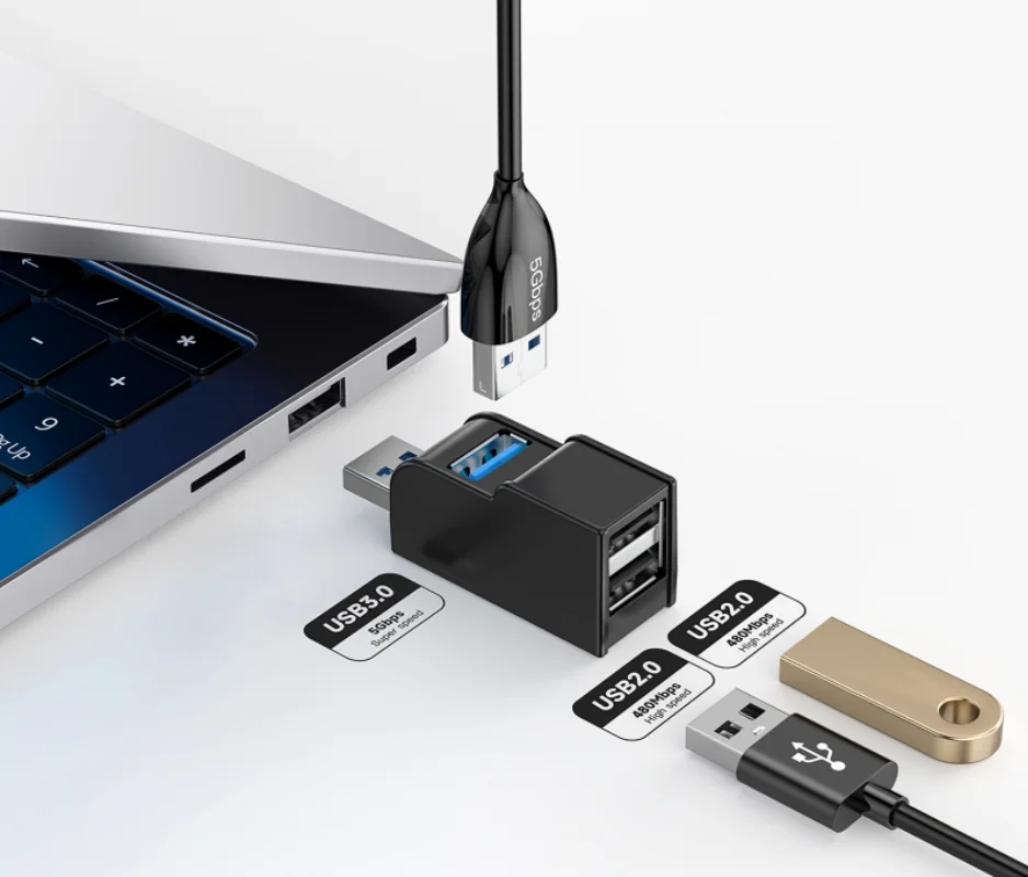 USB 3.0 HUB Adapter Extender Mini Splitter Box 1 to 3 Ports High Speed USB 2.0 For PC Laptop U Disk Card Reader
