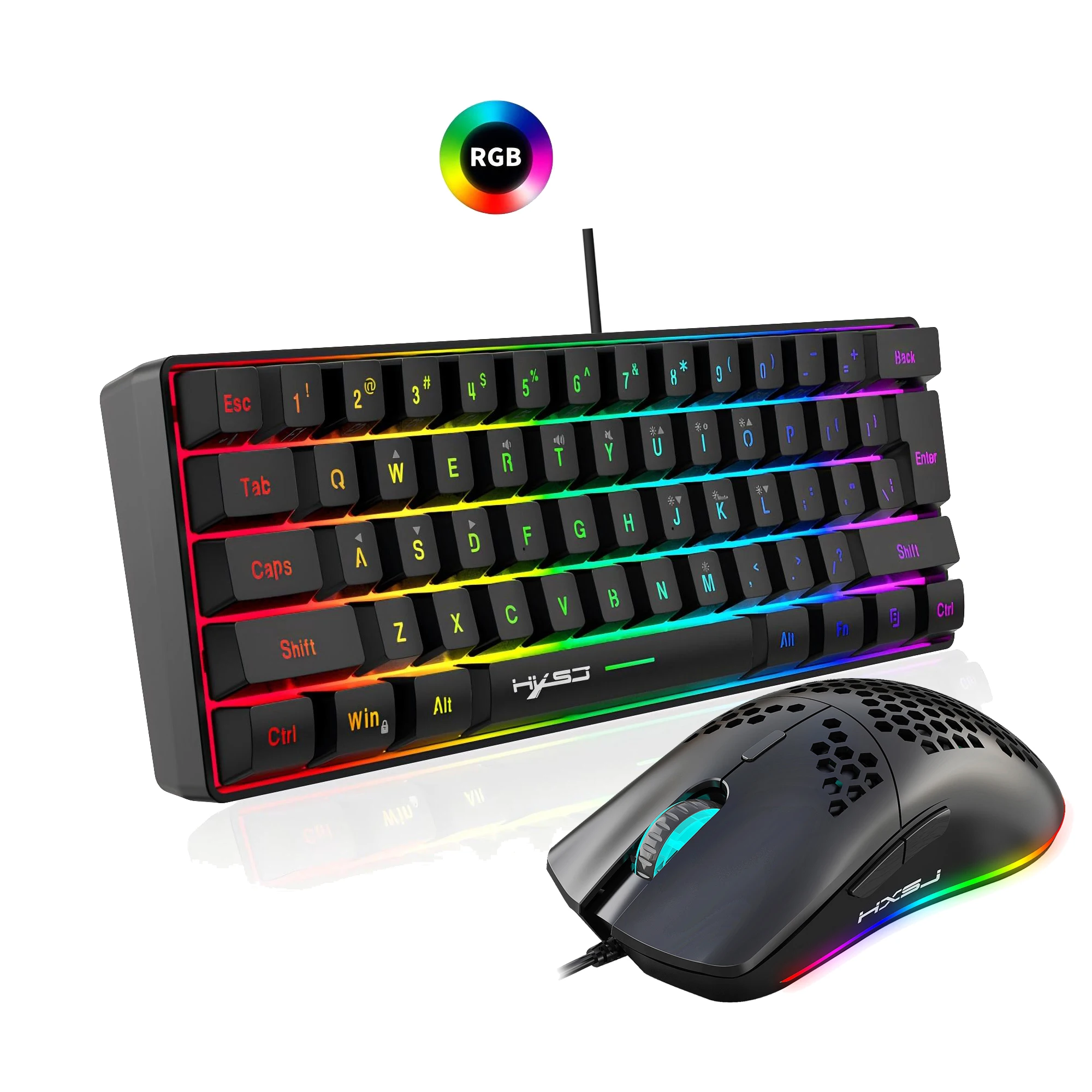 Hot selling HXSJ 61 keys V700 RGB luminous mechanical feel keyboard and mouse combos gaming set for computer game