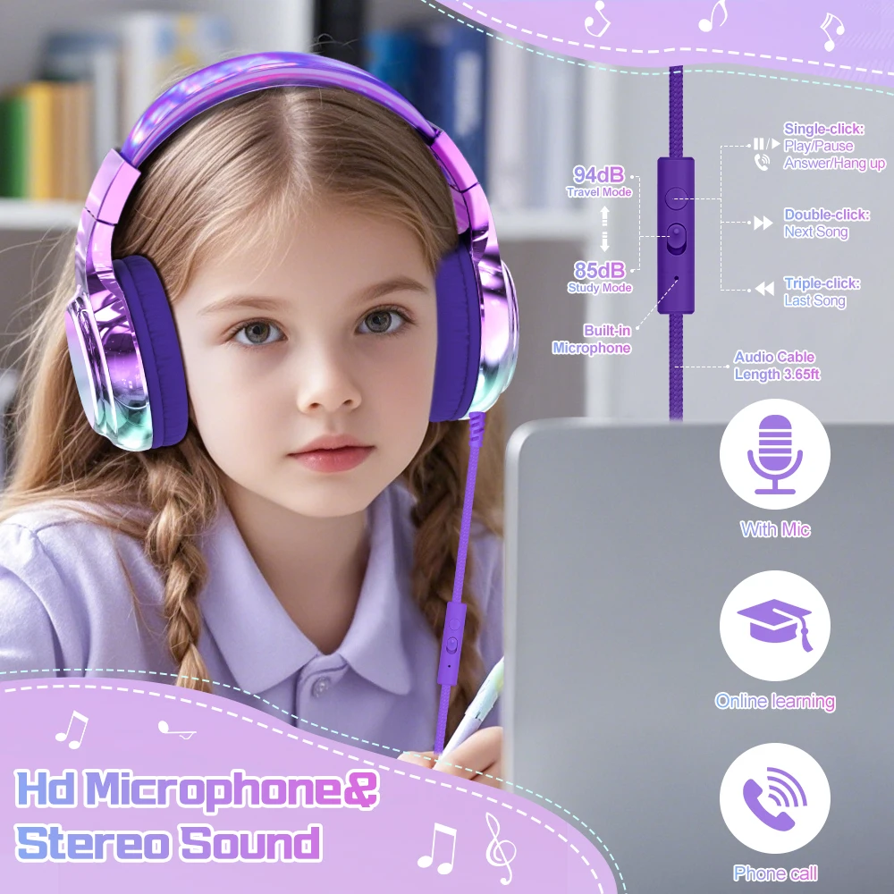 Kids Headphones Wired 3.5mm Jack Stylish Foldable Children’s Gaming Headset With Mic For iPhone Computer Tablet PC Girls Gifts