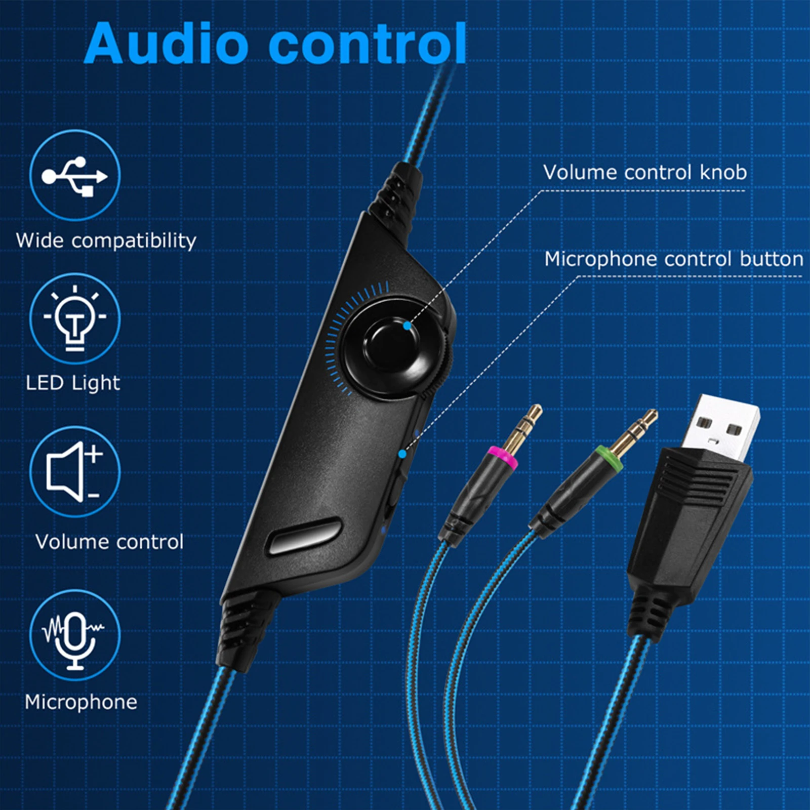 KOTION EACH G2000 Gaming Headset Deep Bass Stereo Game Headphone with Microphone LED Light Soft Memory Earmuffs for PC Laptop