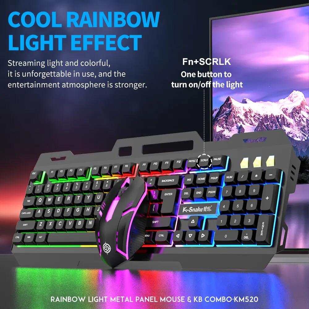 It is ergonomically designed to reduce the fatigue of long-term use, convenience and comfort. And it is also equipped with a variety of multimedia key combinations, suitable for games or office or home.The gaming keyboard adopts a game-style floating keycap, and the keycap adopts two-color injection molding technology to prevent wear and tear for long-term use. The aluminum alloy metal panel is also waterproof and durable.