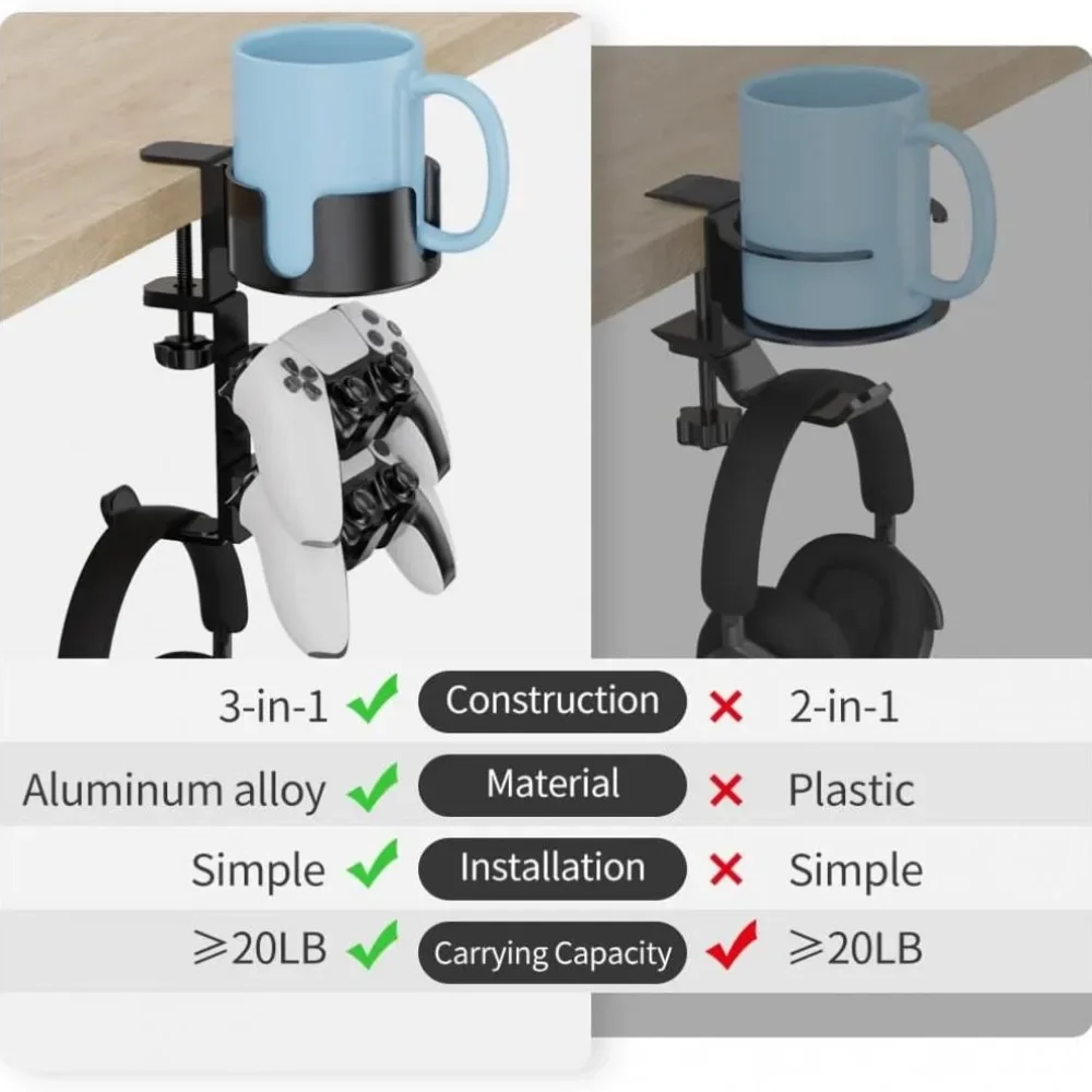 4-in-1 Multifunctional Cup Holder Organizer–Universal design of one cup holder and three stands, can be rotated 360 degrees, and can be adjusted to a comfortable angle without pressure, perfect for cups and various headsets, game controllers, mobile phones, or other devices Storage.