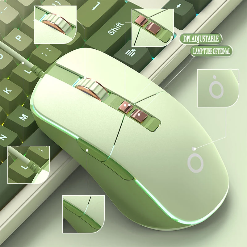 New USB Wired Mouse Ergonomic RGB Backlit Green Mice Silent Optical Girl Gamer Mause for gaming office desktop computer notebook