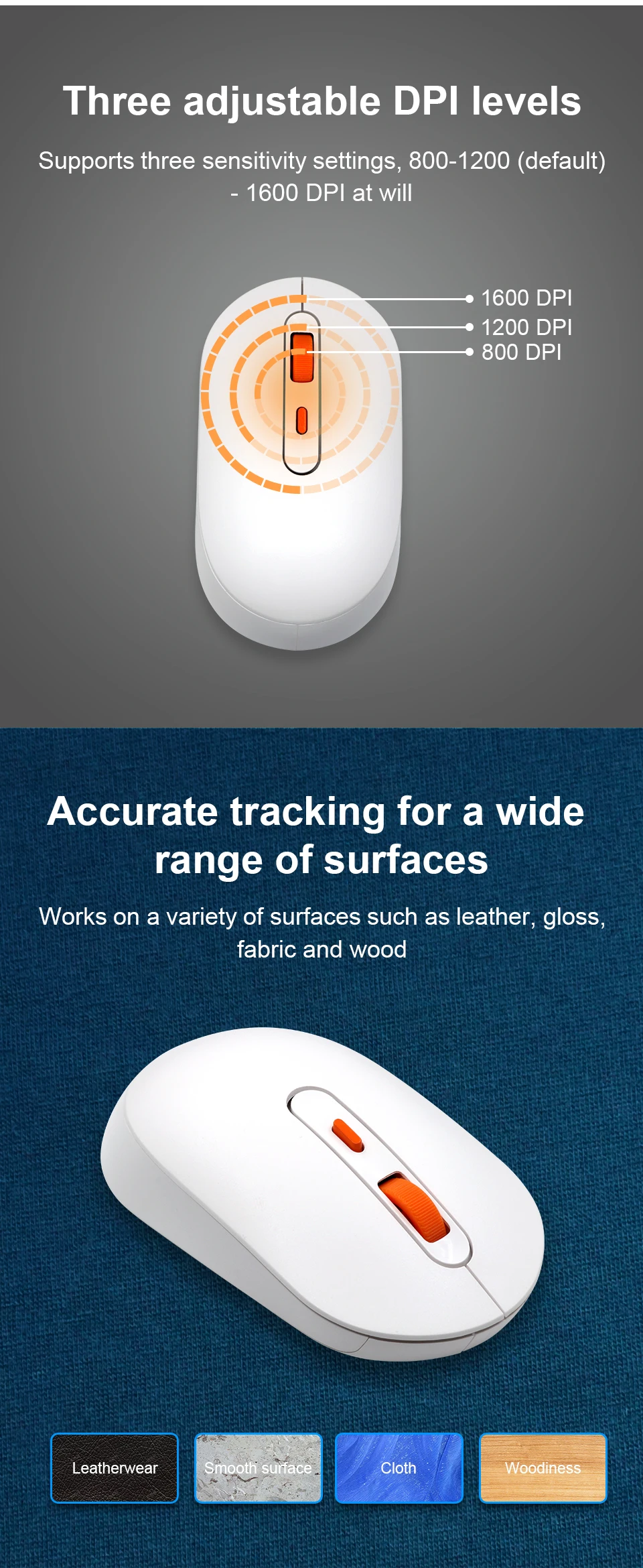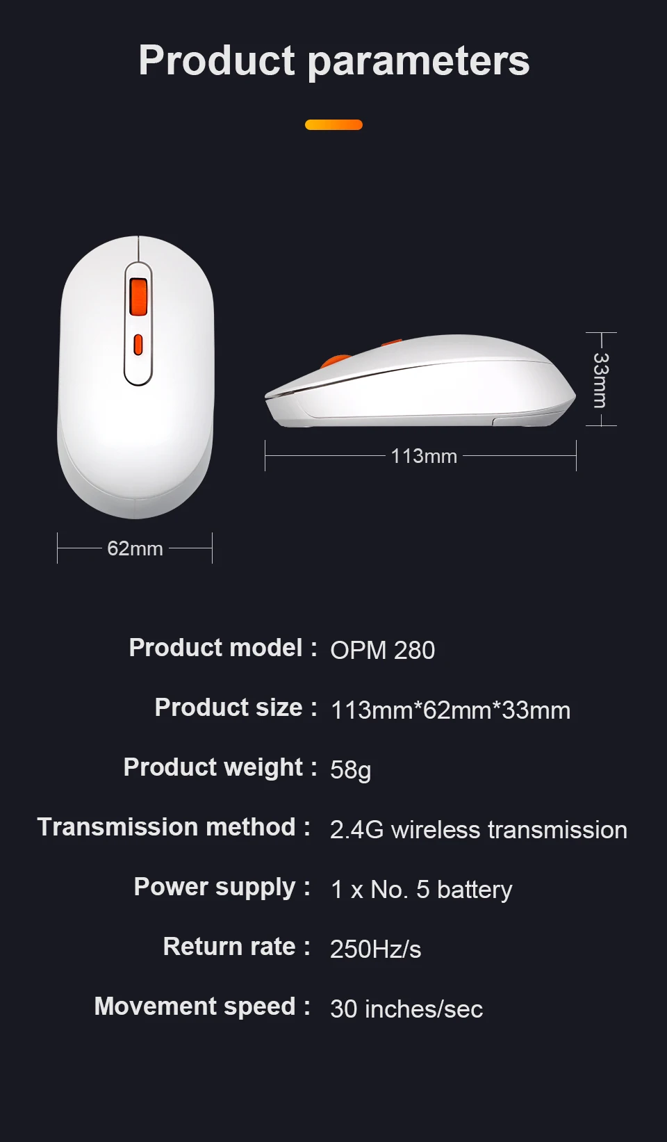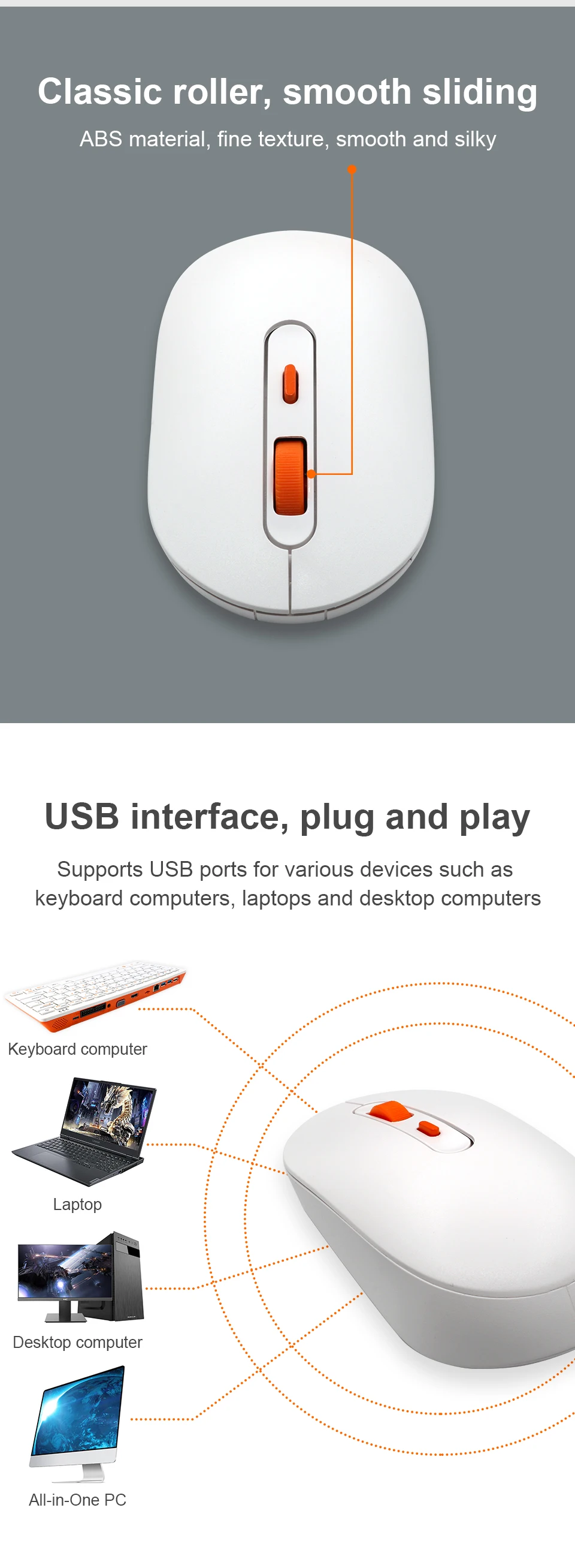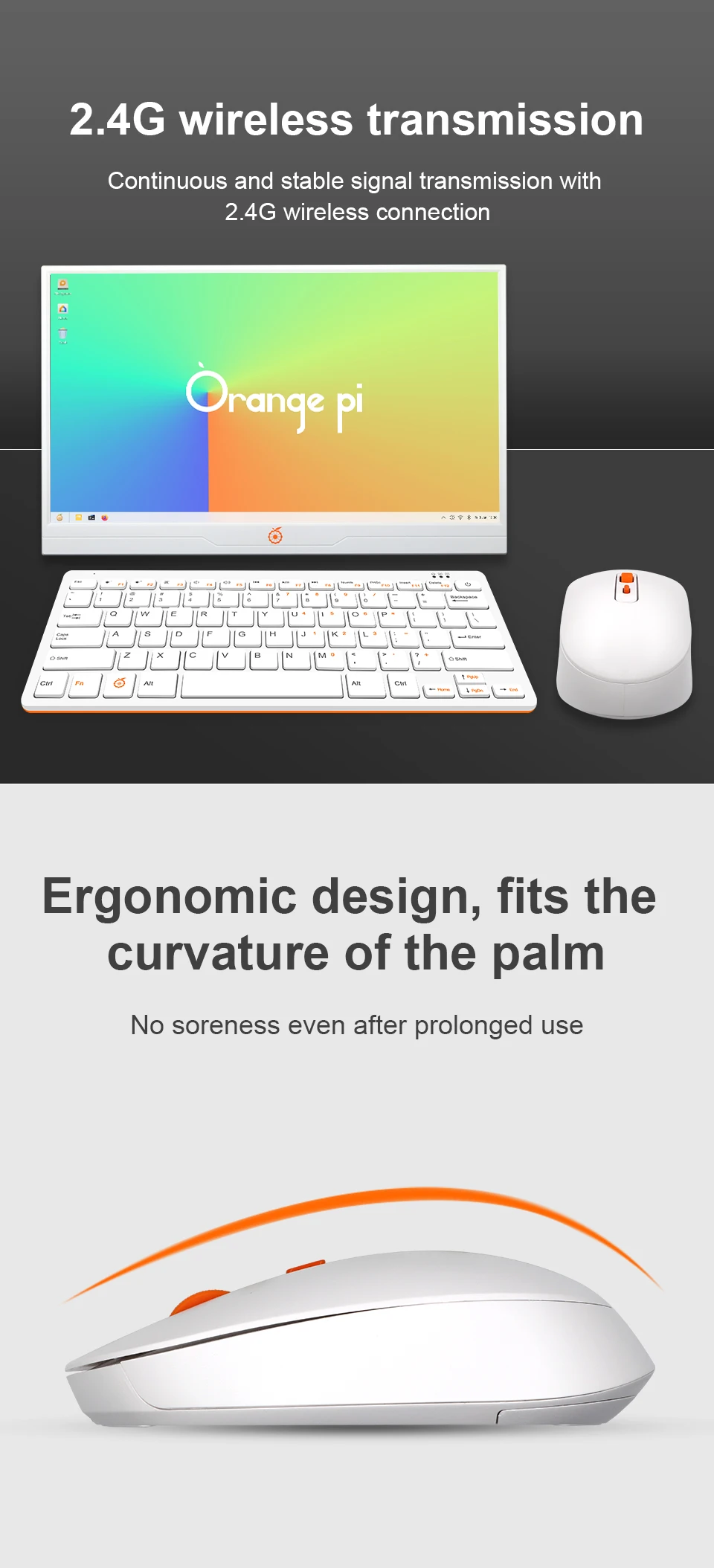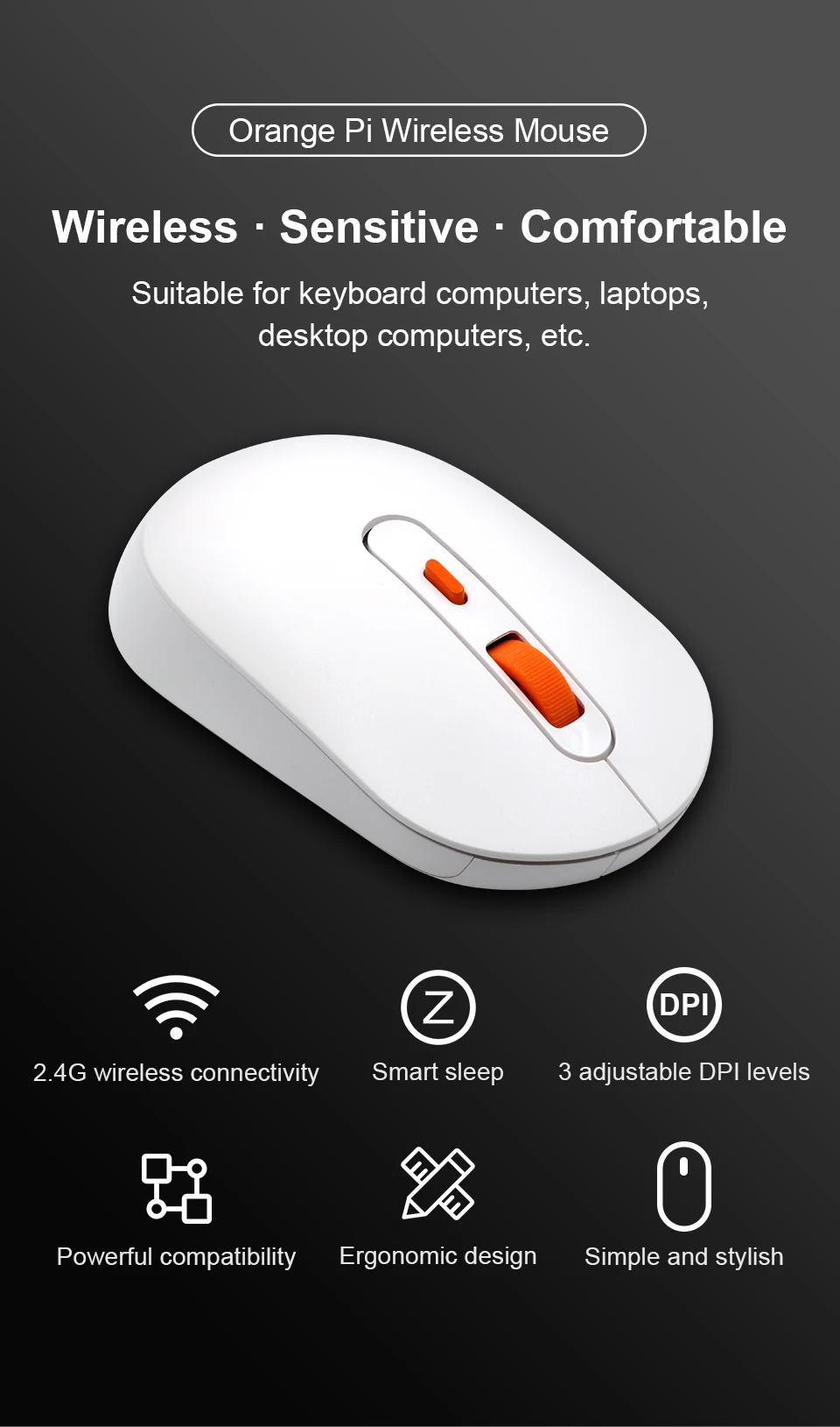 Orange Pi Wireless Mouse 2.4G Transmission USB Receiver 3 Buttons 1600 DPI for Keyboard Desktop Computer Laptops PC Gaming Mouse