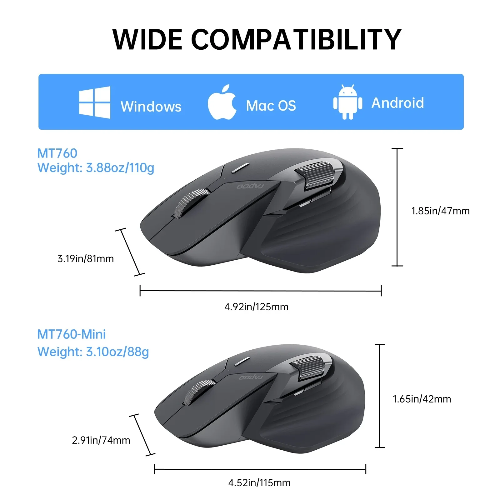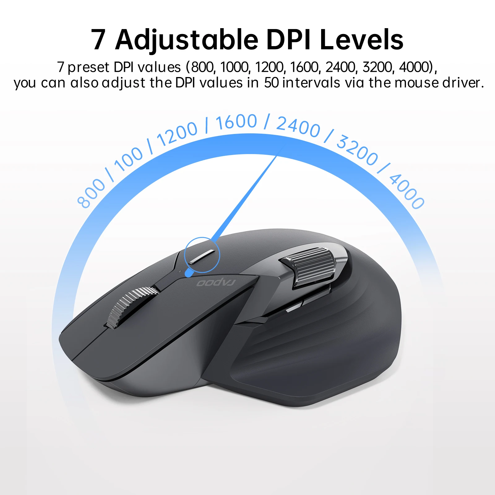 Rapoo MT760 Multi-Device Wireless Mouse Bluetooth Computer Mouse 11 Programmable Buttons 90 Days Battery Life