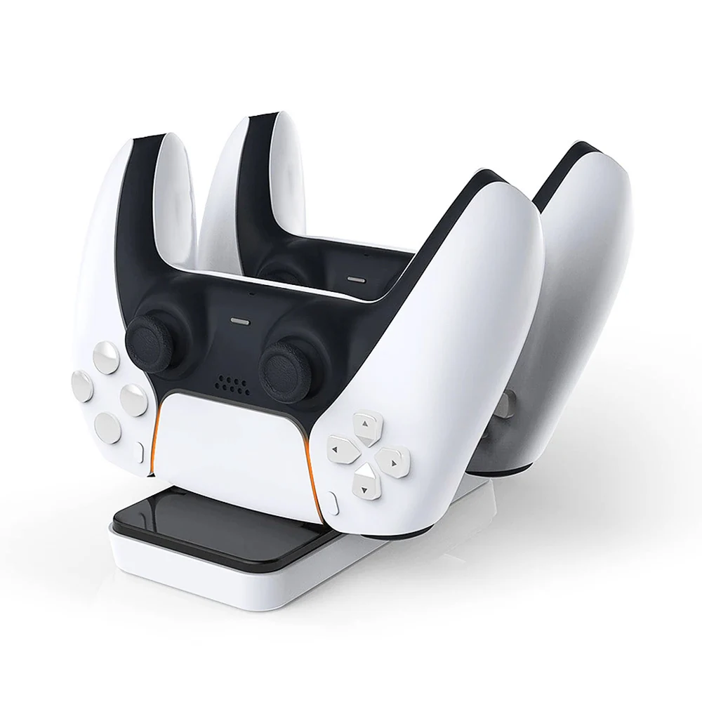 The Dual docking dock is specially designed for Playstation 5 Controllers, black and white design, simple but classic.
