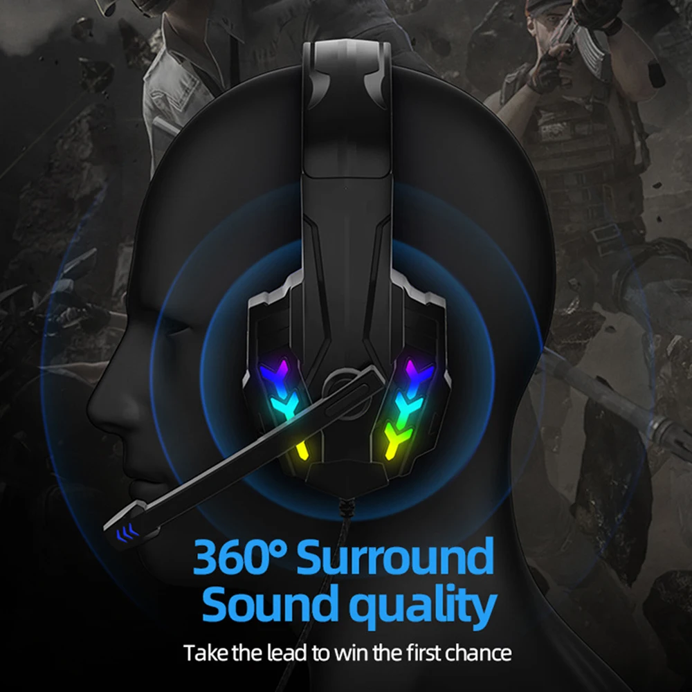 6. [Dazzling LED lights] LED lights are designed on the earmuffs and microphone to highlight the gaming atmosphere.