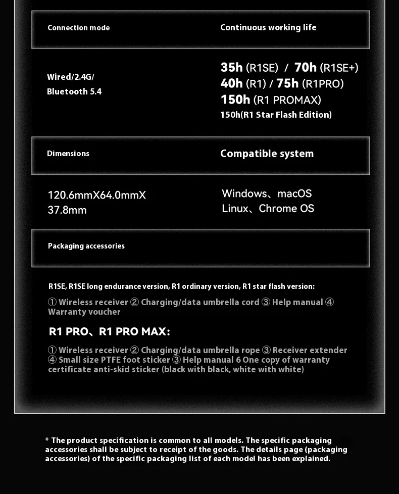 Model: Star Flash R1/R1 SE/R1/R1 Pro/R1 PRO MAX