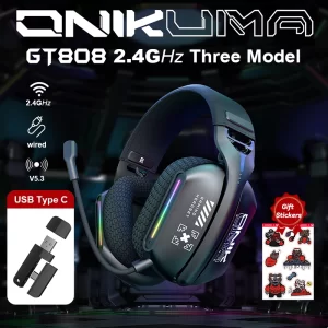 ONIKUMA GT808 Wireless Headphone with RGB Light 2.4Ghz Low Latency Gaming Headset with 360° Rotating Microphone For PC PS5